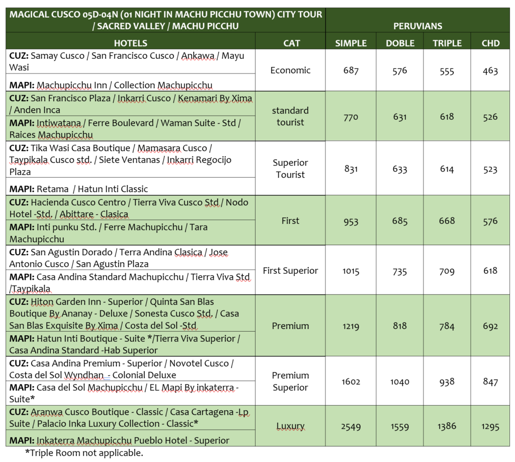 (01 NIGHT IN MACHU PICCHU TOWN)