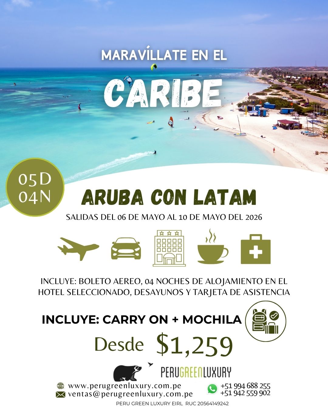 - Boleto aéreo: Lima / Aruba / Lima