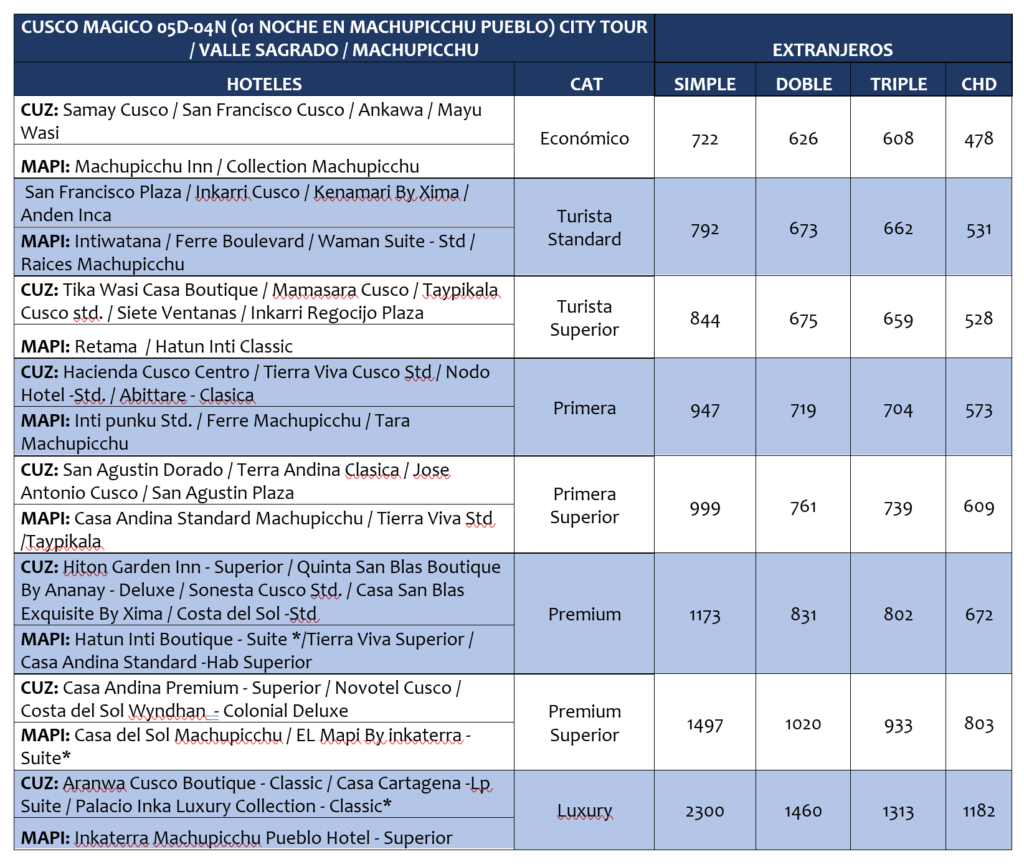 - 03 noches de alojamiento en Cusco