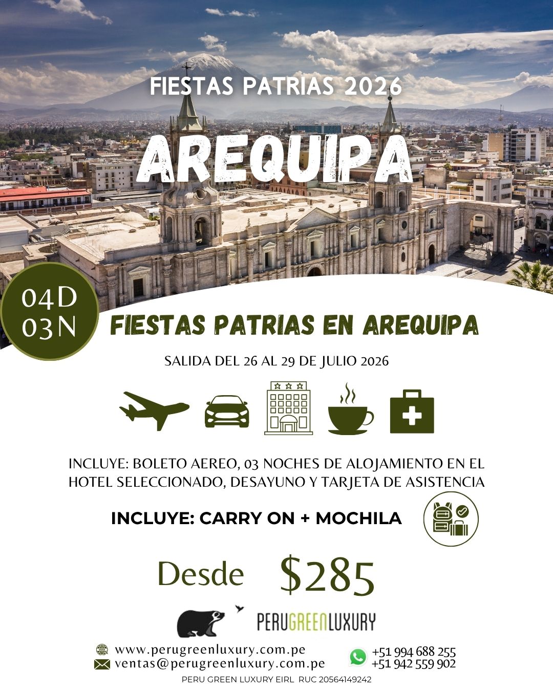 FIESTAS PATRIAS EN AREQUIPA: 04 DIAS – 03 NOCHES