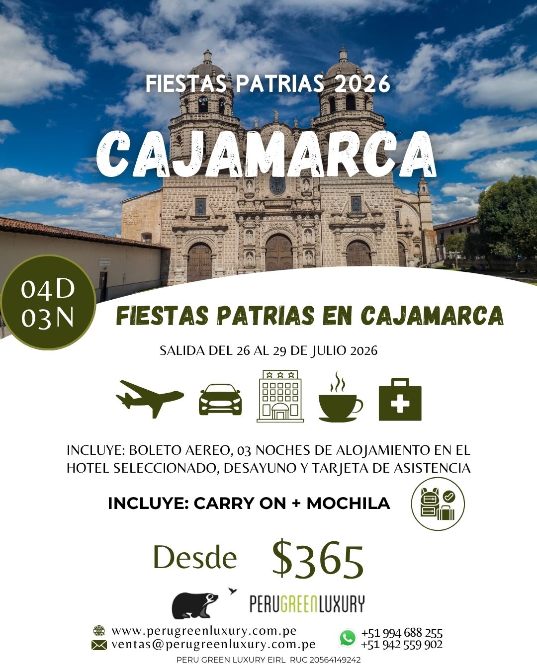 FIESTAS PATRIAS EN CAJAMARCA: 04 DIAS – 03 NOCHES