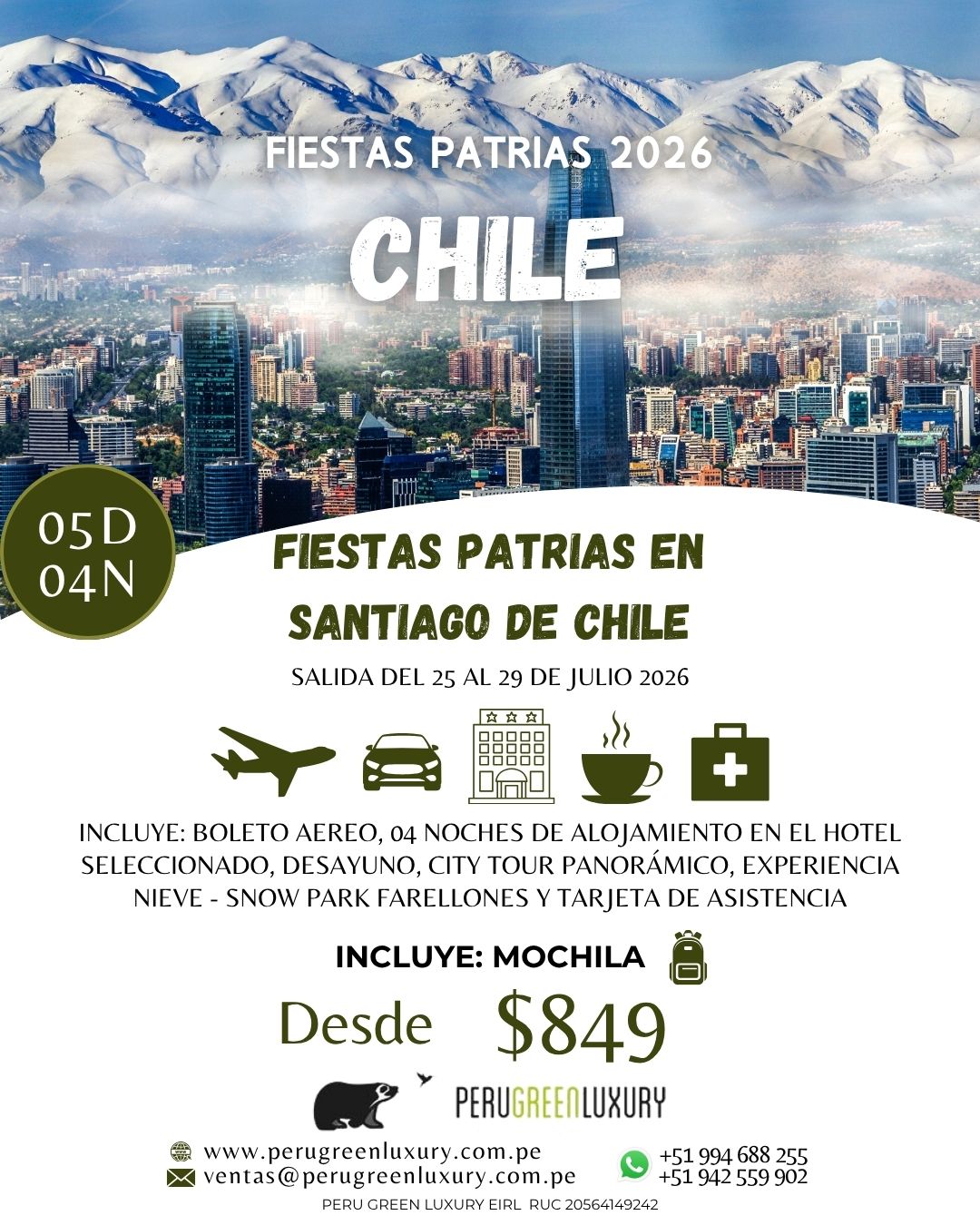 FIESTAS PATRIAS EN CHILE CON LATAM: 05 DIAS – 04 NOCHES