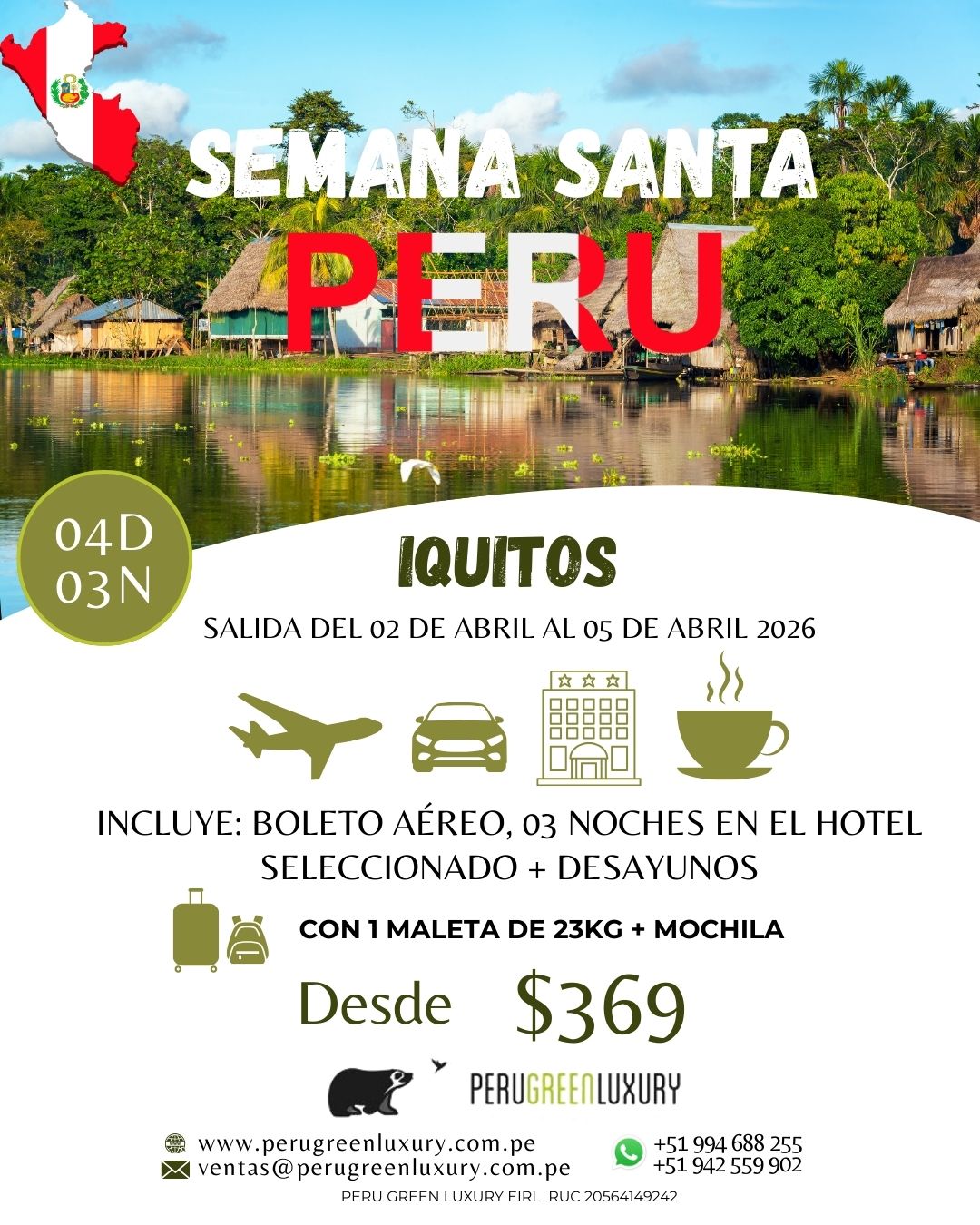 - 03 noches de alojamiento en Hotel de Iquitos.